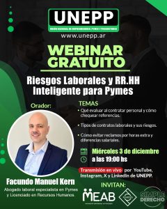 🌍👔 Webinar gratuito: riesgos laborales y RR.HH inteligente para PYMES 👉 Facundo Manuel Kern, abogado laboral y licenciado en RR.HH,